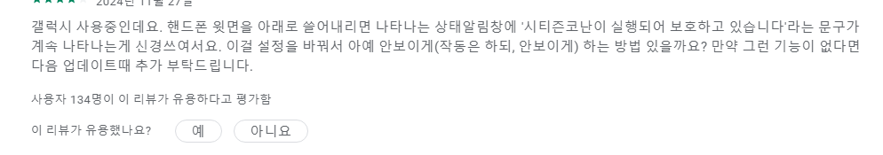 하지만 알림을 끄는 경우 악성앱 탐지 시 팝업창만 뜨게 되며, 상단바에서 알림은 떨어지지 않는 점 참고 부탁드립니다.