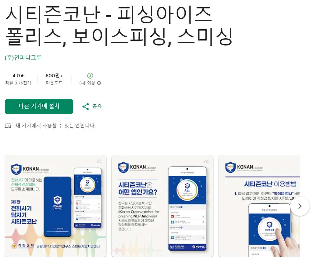 검색창에 “시티즌코난” 입력 후 다운로드 및 설치.