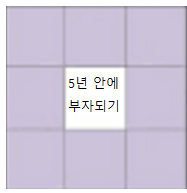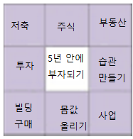 세부내용을 적는다. 5년 안에 부자가 될 수 있는 방법을 8개의 칸에 하나씩 채워 나간다