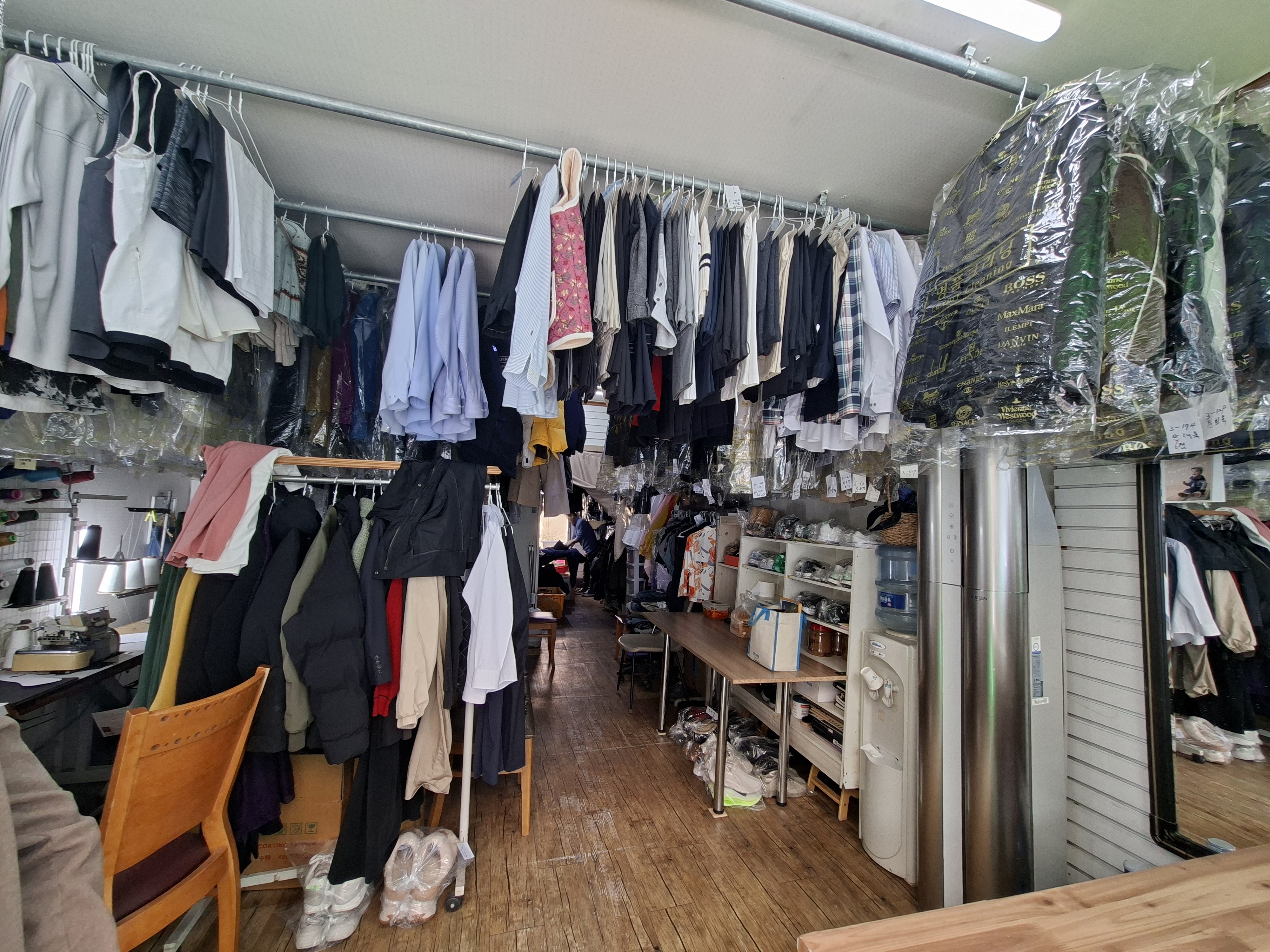 가게 안으로 들어서니 기분 좋은 스팀의 온기와 은은한 세제 향기가 맞이해 주었습니다. 빽빽하게 걸린 옷들은 모두 주인을 기다리며 뽀송뽀송하게 단장을 마친 상태였죠. 의류 드라이클리닝은 물론이고 가죽 수선부터 이불 세탁까지, 사장님의 손길이 닿지 않는 곳이 없는 만능 작업소 같았습니다.