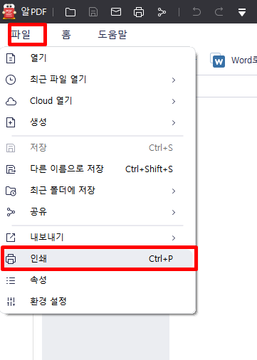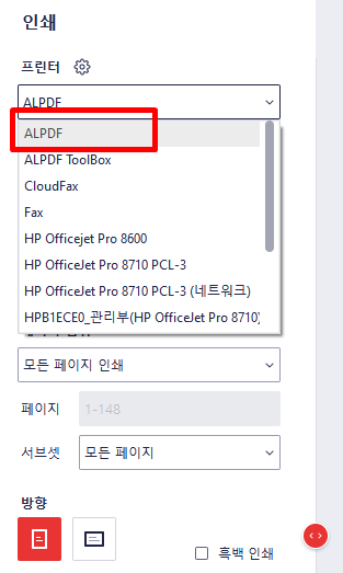 3. 인쇄 에서 프린터를 ALPDF로 선택