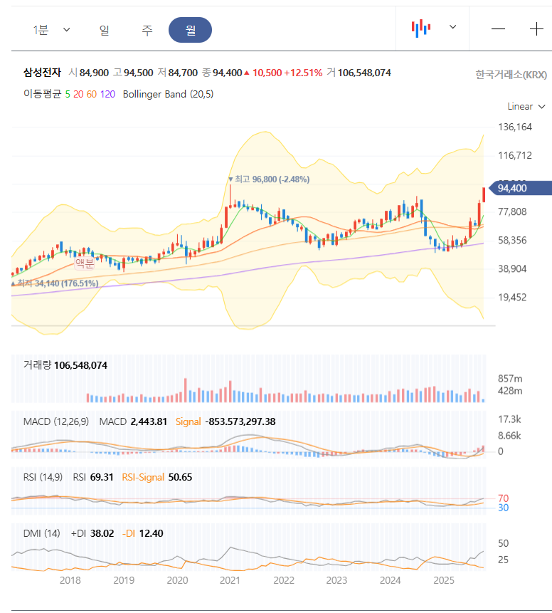 최근 삼성전자 주가가 '8만전자' 고지를 밟은 이후 숨 고르기에 들어가면서 '이거 팔아야 하나, 아니면 오히려 기회인가?' 고민이 많으실 텐데요. 특히 미국 금리 인하 기대감과 반도체 업황 회복 기대감으로 급등했던 만큼, 지금의 단기 조정은 오히려 물량을 모아갈 절호의 기회가 될 수 있습니다. 그래서 오늘은 삼성전자(005930)에 대해 속 시원하게 파헤쳐 보는 시간을 갖겠습니다. 이 회사가 과연 믿고 갈 만한 펀더멘탈을 가졌는지, 그리고 차트는 우리에게 어떤 힌트를 주고 있는지 함께 살펴보시죠! 😊