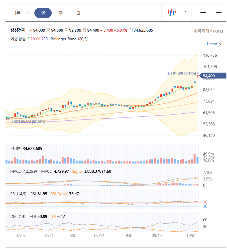 현재 주가는 직전 고점 83,500원 부근에서 저항을 받고 있으며, 일봉 RSI 지표가 과매수 상태에서 내려오는 중이므로, 단기 조정 국면에 진입했음을 인지하고 접근해야 합니다.