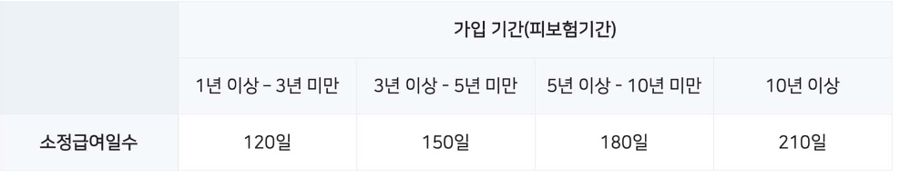 고용보험 가입 기간에 따라 120일~210일까지 구직급여 지급이 가능해요.