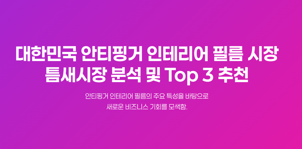 지문 방지는 기본, 스크래치와 오염에도 강한 안티핑거 필름은 이제 특정 소비자층과 공간의 니즈를 정확히 저격하며 새로운 틈새시장을 열고 있습니다. 본 포스팅에서는 대한민국 안티핑거 인테리어 필름 시장의 유망한 틈새시장을 분석하고, 가장 주목해야 할 Top 3 시장을 추천해 드립니다.