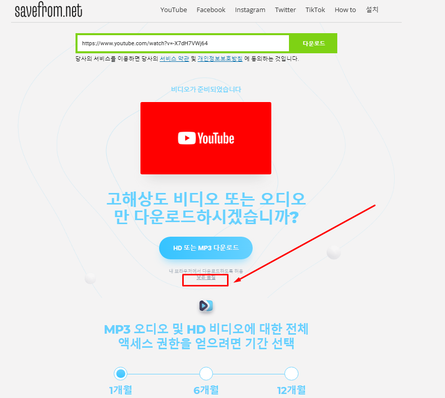 - 3단계: 원하는 영상 화질(예: 720p, 1080p 등)이나 파일 형식(MP4, MP3 등)을 선택합니다.