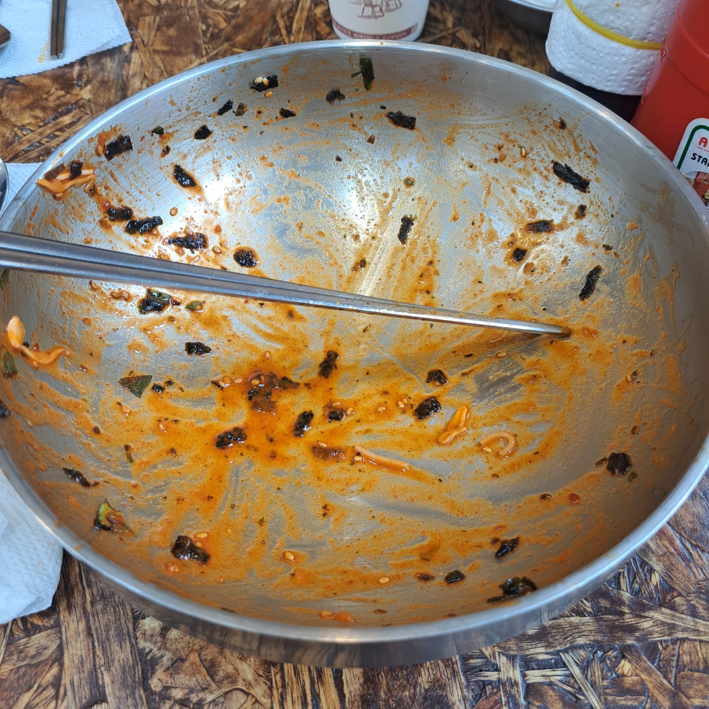 정말 쉴 새 없이 젓가락을 움직여 깨끗하게 비웠네요! 그릇에 남은 양념까지 싹싹 긁어먹었을 정도로 맛있었어요.