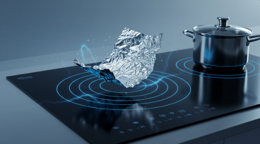 쿠킹호일을 인덕션 위에 직접 올려두는 것은 매우 위험합니다. 과열로 인한 화상이나 인덕션 고장의 원인이 될 수 있어요. 절대 따라 하지 마세요!