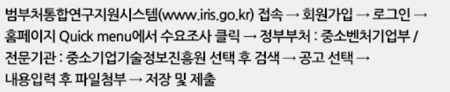 (조사대상) 중소기업기술혁신개발사업에 관심이 있고, 참여의사가 있는 중소기업, 대학 및 연구소, 학회/협회 등에 소속된 자 또는 개인