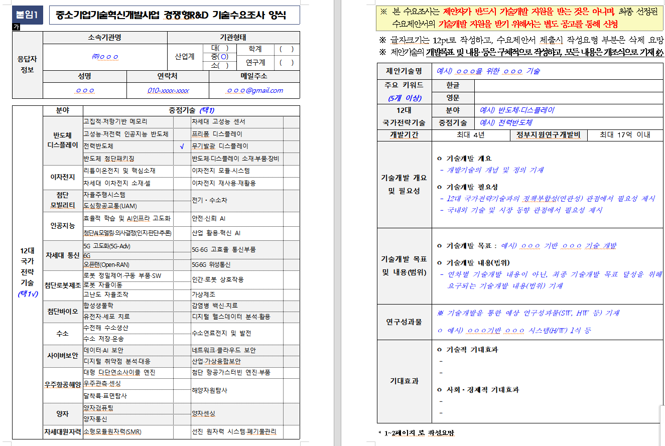 (조사목적) '25년 중소기업기술혁신개발사업 경쟁형R&D 신규과제 지원을 위해 기술수요를 파악하고, 연구테마(테마정의서) 기획에 활용