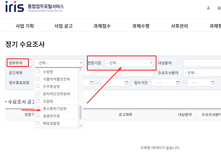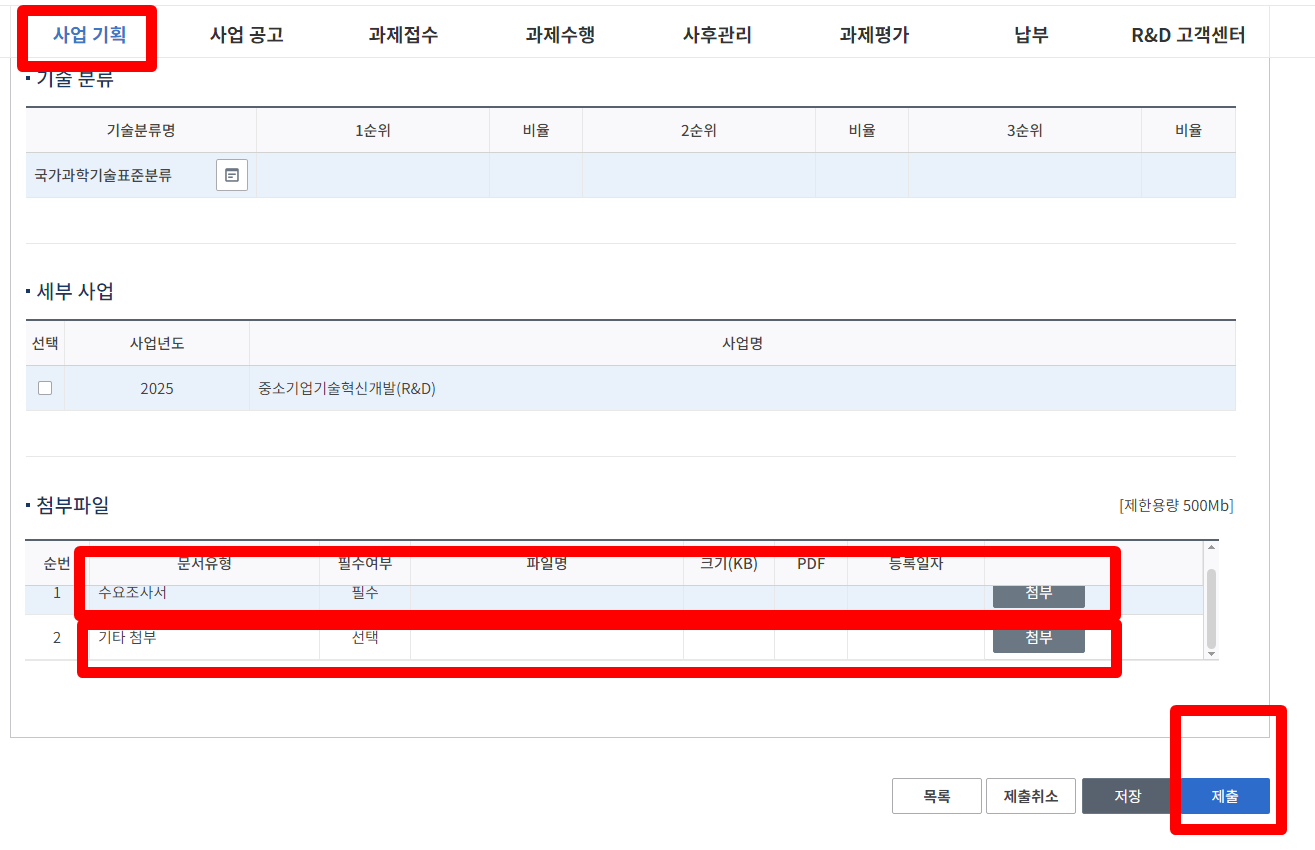 수요조사서는 한글로 다운 받아 작성해서 첨부해야 합니다.