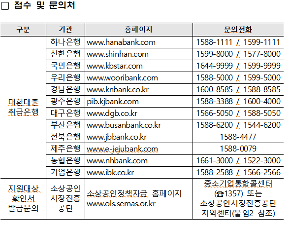 ◦ (대출접수‧심사‧실행) 대환대출 취급은행(12곳) 영업점에서 접수하여 심사 후 대출결정 및 실행(대환대출 취급은행별 상이)