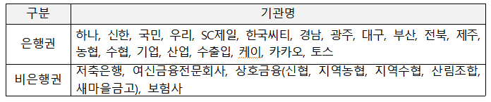 * 가계대출(카드론, 현금서비스 등), 보험계약대출, 한도대출(마이너스통장 등), 리스대출, 정책금융기관 대출 등
