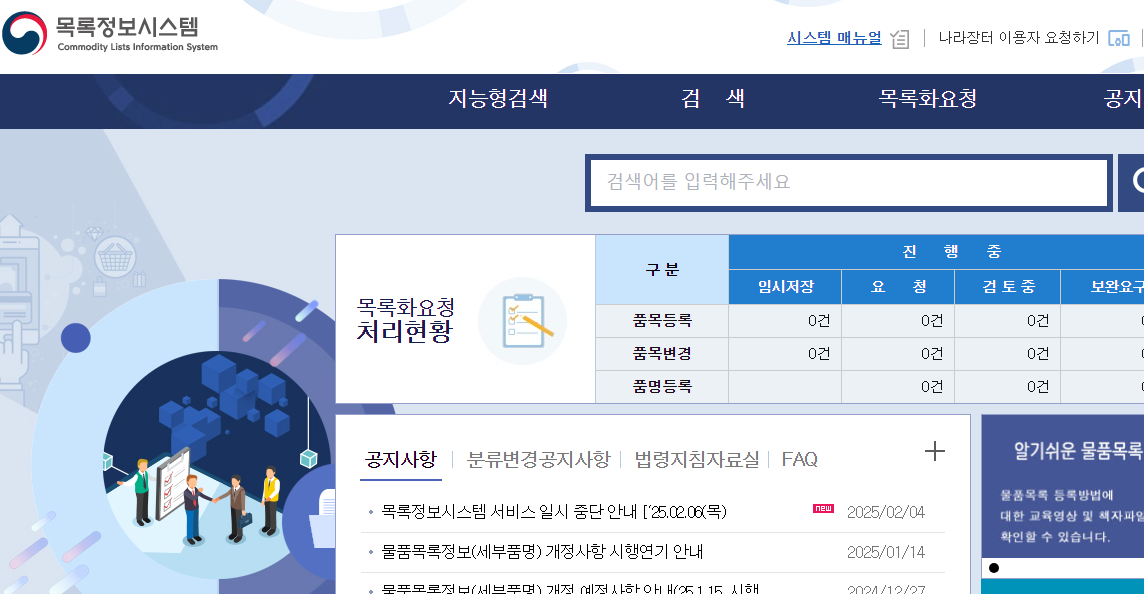 1. 품목등록 시 입력하는 제조업체는 나라장터 경쟁입찰참가자격등록이 되어있어야 함.