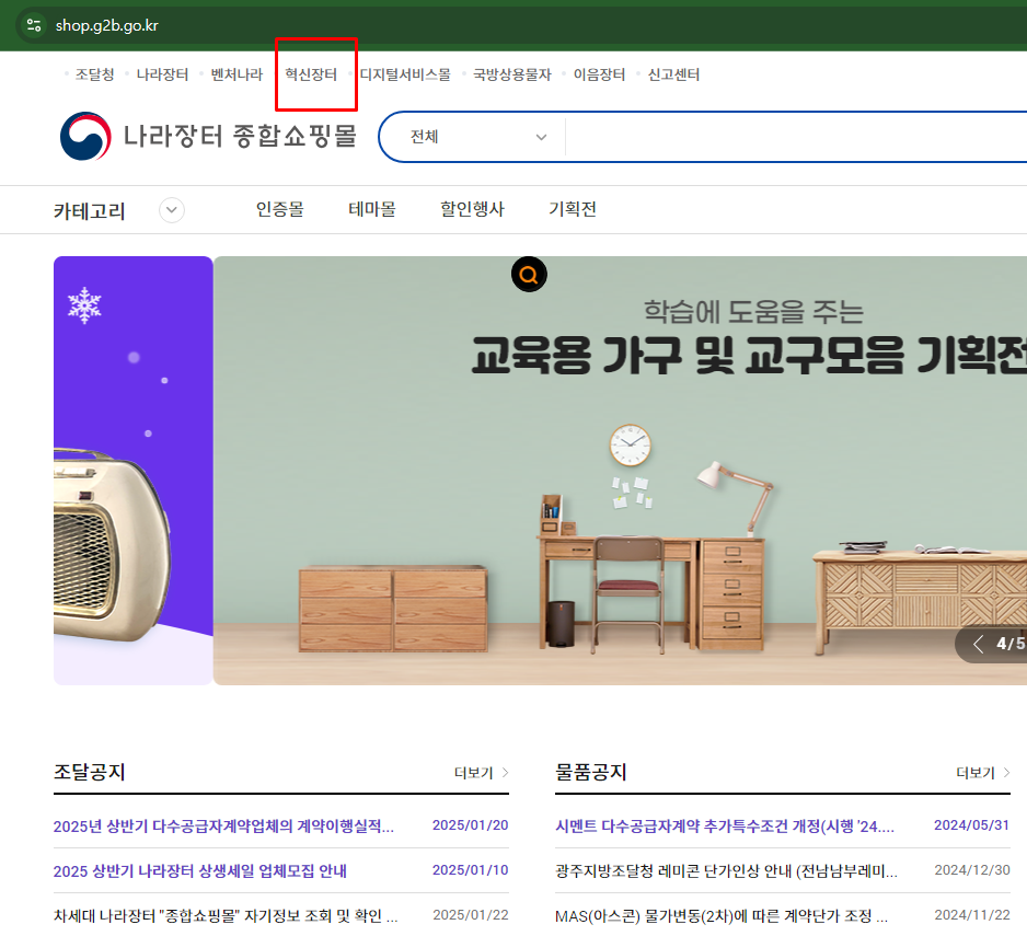 2. 조달청->나라장터->나라장터 종합쇼핑몰=>혁신장터=>목록정보시스템