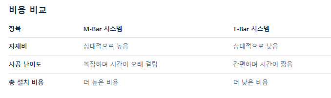 M-Bar 시스템과 T-Bar 시스템은 천장 시공에 사용되는 대표적인 경량 철골 구조 시스템으로, 각각의 특징과 용도에 따라 다양한 건축 환경에서 활용됩니다