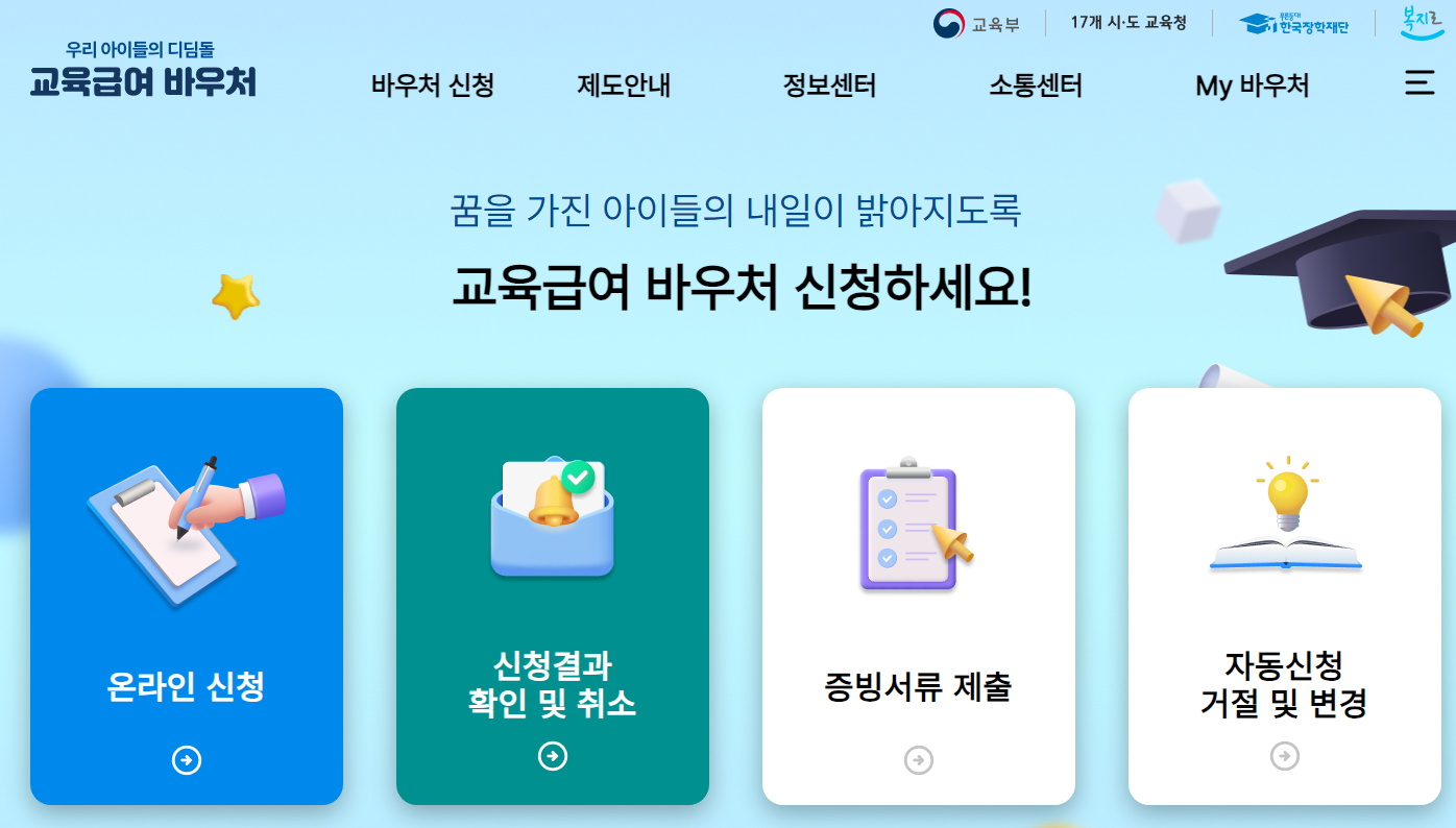교육활동지원비 지급 방식이 2023년부터 이용권(바우처)으로 변경돼 교육급여 신규 수급자로 확정된 이후, 교육활동지원비를 지급받기 위해서는 교육급여 바우처 누리집(https://e-voucher.kosaf.go.kr ) 에서 별도 신청을 해야 한다.