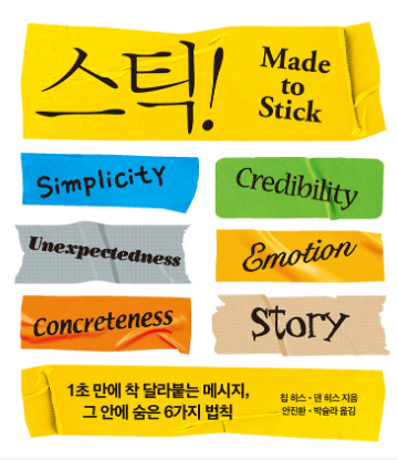 스틱(Stick)은 메시지가 사람들의 마음에 오래도록 남도록 만드는 방법을 탐구하는 책입니다.