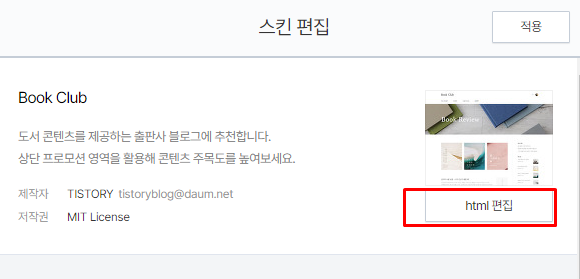 > 블로그관리=> 꾸리미-[스킨편집]클릭=>[html편집] 클릭 후