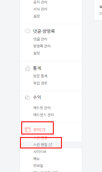 > 블로그관리=> 꾸리미-[스킨편집]클릭=>[html편집] 클릭