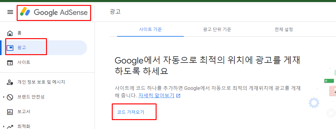 스킨을 변경한 후에는 구글 애드센스 코드를 입력해야 합니다.