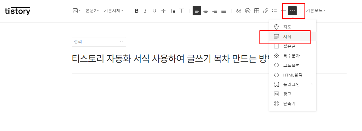 2.서식사용하여 본문 글 작성하기