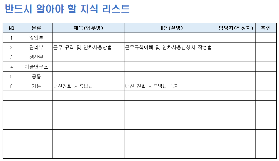 1.일단 부서별 지식리스트부터 취합하려구요