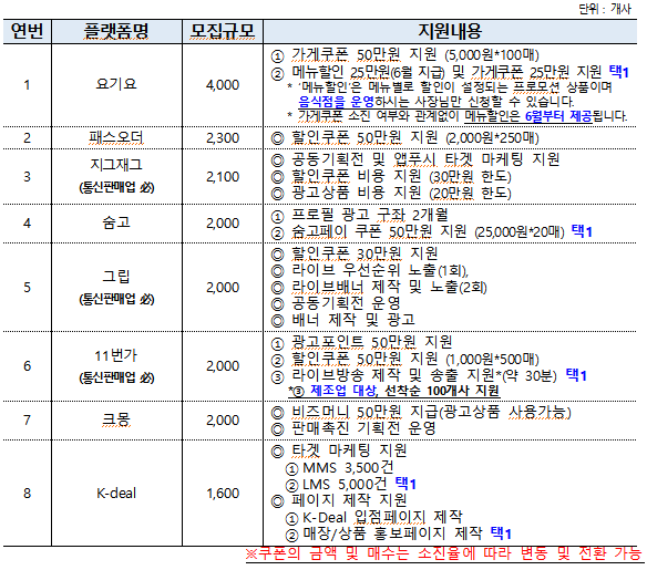 3.O2O플랫폼 별 지원내용