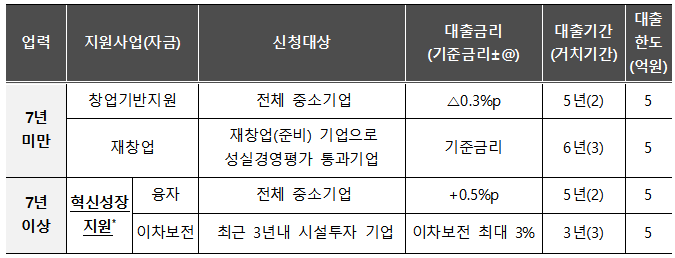 문의처 : 정책자금 전담콜센터(1811-3655)