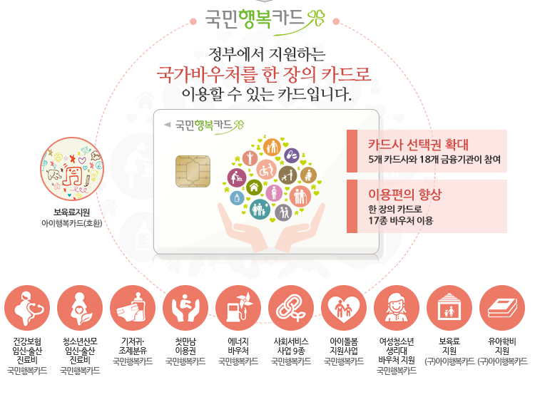 - 국민행복카드: 정부의 다양한 바우처 지원 사업을 통합한 카드!