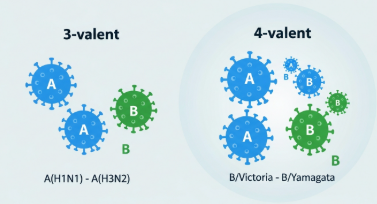 | 예방 범위 | 3가지 바이러스 (A형 2종, B형 1종) | 4가지 바이러스 (A형 2종, B형 2종) |