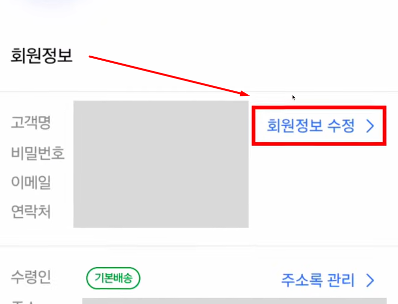 - 설정 화면에서 '내 정보 관리' 섹션을 찾은 후, '회원 수정'을 누릅니다.