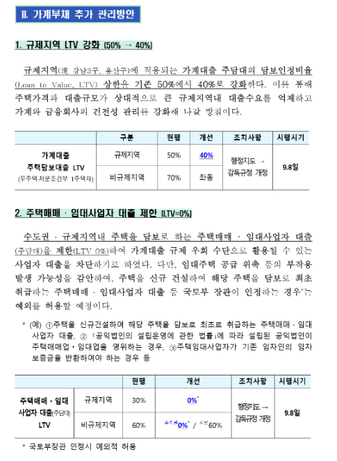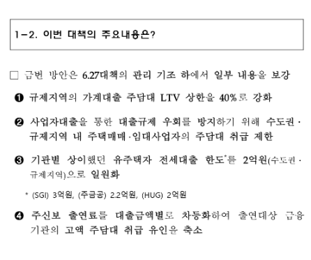 - 3. 다른 규제들도 함께 확인하세요. 이번 대책에는 주택매매·임대사업자 대출 제한, 1주택자 전세대출 한도 축소 등 다양한 내용이 포함되어 있습니다. 모든 규제를 종합적으로 고려하여 전략을 세워야 합니다.