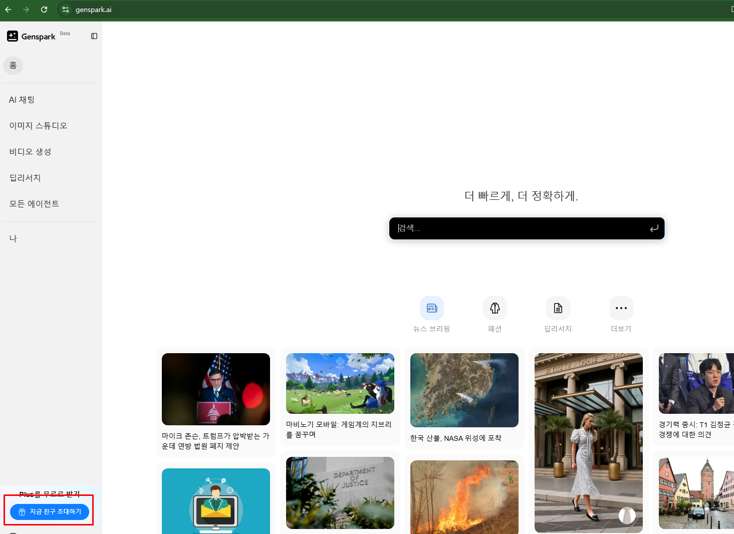 친구도 나도 모두 다 1개월 동안 무료 Genspark Plus를 받습니다