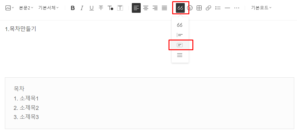 1.2. 글박스 안에 목차와 소제목 들어갈 자리를 잡습니다.