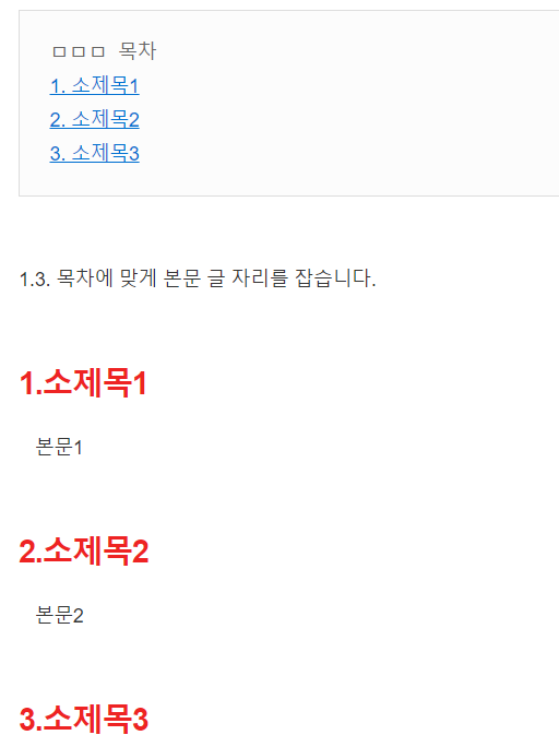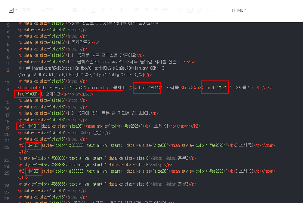 2. 목차에서 소제목 바로가기 설정 HTML 코드 익히기
