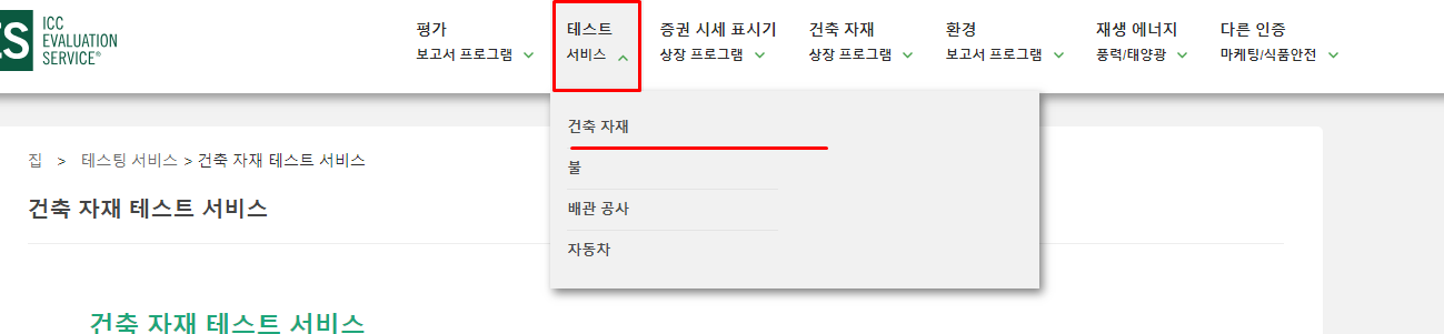 미국 건축자재 납품을 위하여 ICC-ES를 검토하고 있습니다.