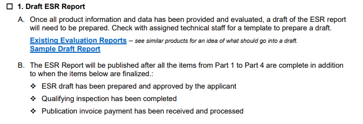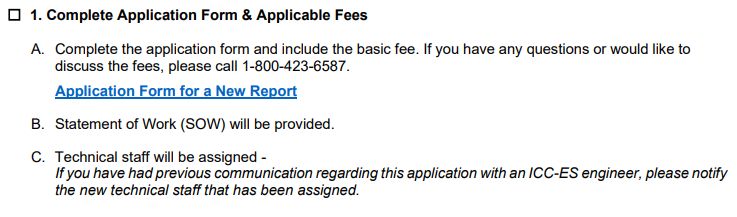ICC 평가 보고서 응용 프로그램 패키지에 대한 체크리스트