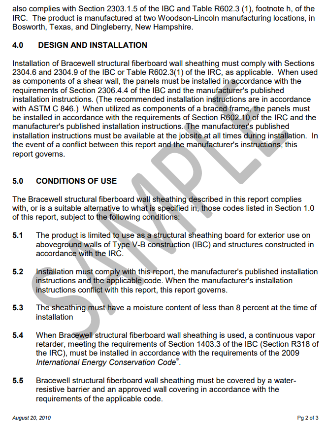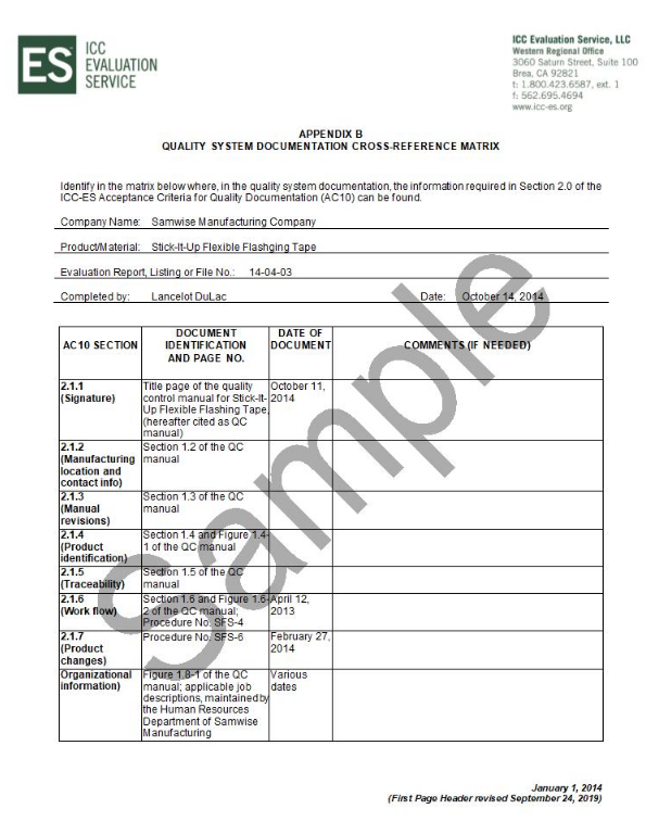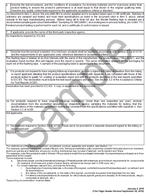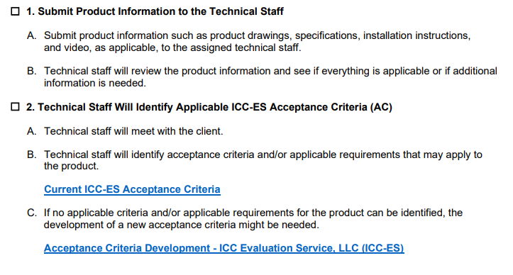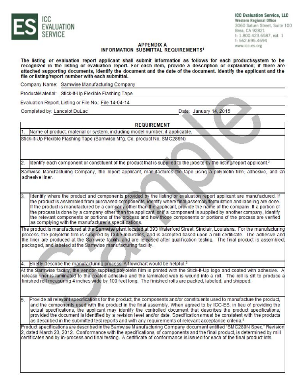 ICC-ES 보고서는 제품을 평가하는 데 사용된 코드 요구 사항 또는 승인 기준, 제품 식별 및 설치 방법 등에 대한 정보를 제공합니다