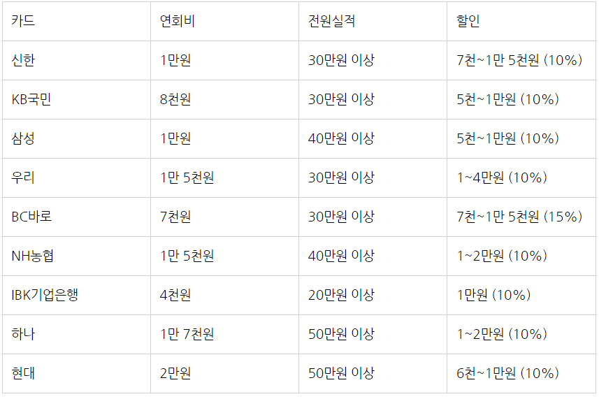 연회비와 할인혜택을 확인하시고 선택하셔야 합니다.