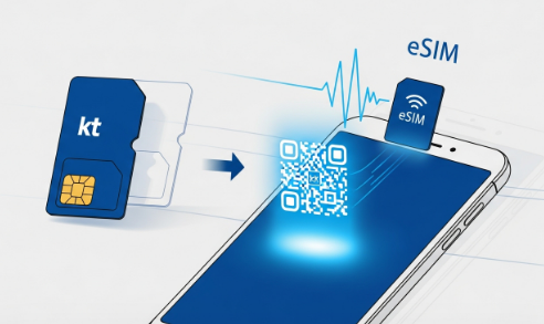 - QR 코드 스캔 또는 수동 입력: 휴대폰 설정 메뉴(일반 > SIM 관리자 또는 셀룰러)에서 'eSIM 추가'를 선택하고, KT가 제공한 QR 코드를 스캔하거나 활성화 코드를 수동 입력하면 끝!