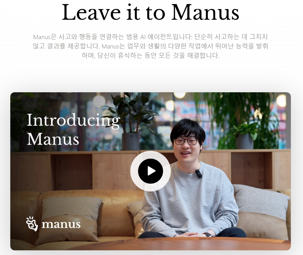 - 공식 웹사이트 접속: 마누스 공식 웹사이트(manus.im)에 접속합니다.